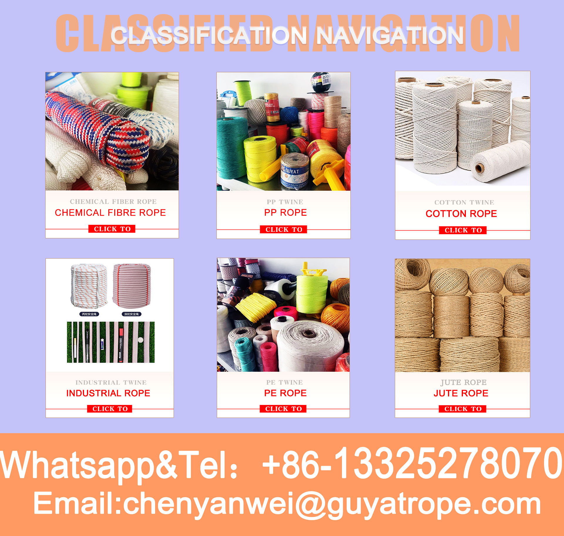 ผลิตภัณฑ์หลัก:เชือกถักที่เป็นของแข็ง, เชือกถักเพชร, ด้ายถัก, เส้นใหญ่, เส้นใยฝ้าย macrame